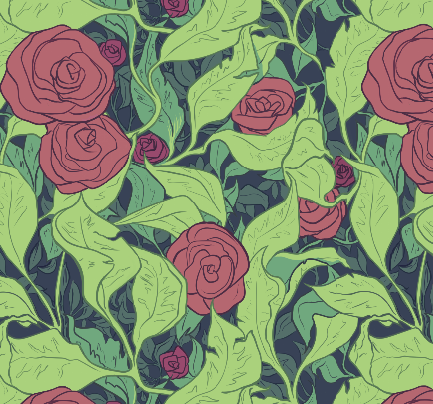 Inspiration can spawn from all sorts of places. In this case, an update to Procreate’s software incorporating a new symmetry feature started a chain of symmetrical drawings. The feature led me to simple compositions and styles, so I focused my efforts instead on inking and color harmony. This was the superlative piece of the batch.